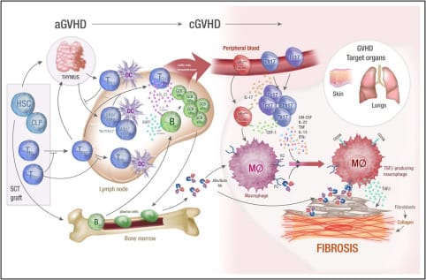 cGVHD differs fundamentally from acute GVHD and resembles features of autoimmunity and chronic inflammation-driven fibrosis. The pathogenesis includes three overlapping phases.