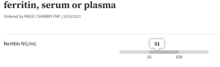 - However, I asked for these labs from my OBGYN because I recently have been feeling fatigued, cold, and bruise relatively easily. I do not have IDA because my H/H are within normal limits, but what about my iron labs? Turns out my ferritin was okay as well. On the lower end of the spectrum (<30 would be considered ID), my ferritin of 51 is not reason for diagnosis of ID, but shows me that maybe I should be more consistent on taking my daily multivitamin with iron!