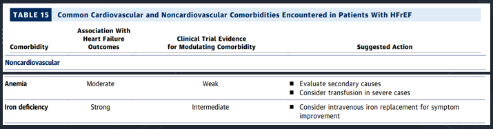 2. Replete with IV if HFrEF (EF <50%). Recommend iron panel for: