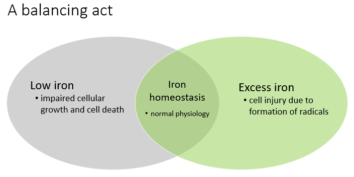 This means we must be careful to not overload a patient with iron. This is especially important when the patient has an active infection or uncontrolled source of infection.