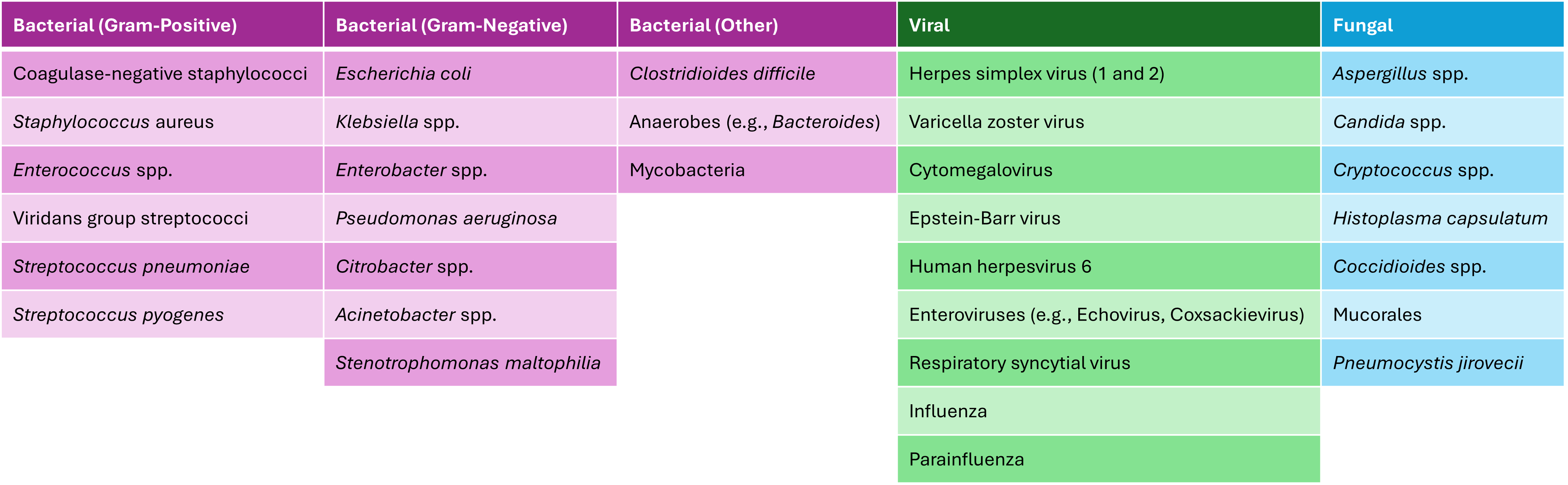 Below is a table outlining the most common infectious etiologies of FN: