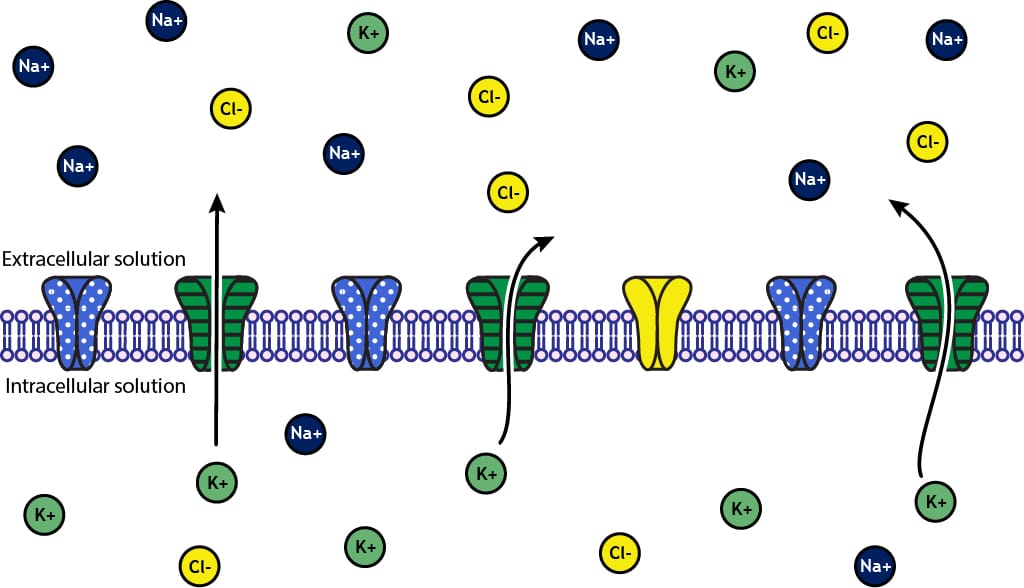 This ion flow can depolarize or hyperpolarize the membrane, which either promotes or inhibits the generation of an action potential. Here are a few things to keep in mind when understanding the drivers of ion flow and direction: