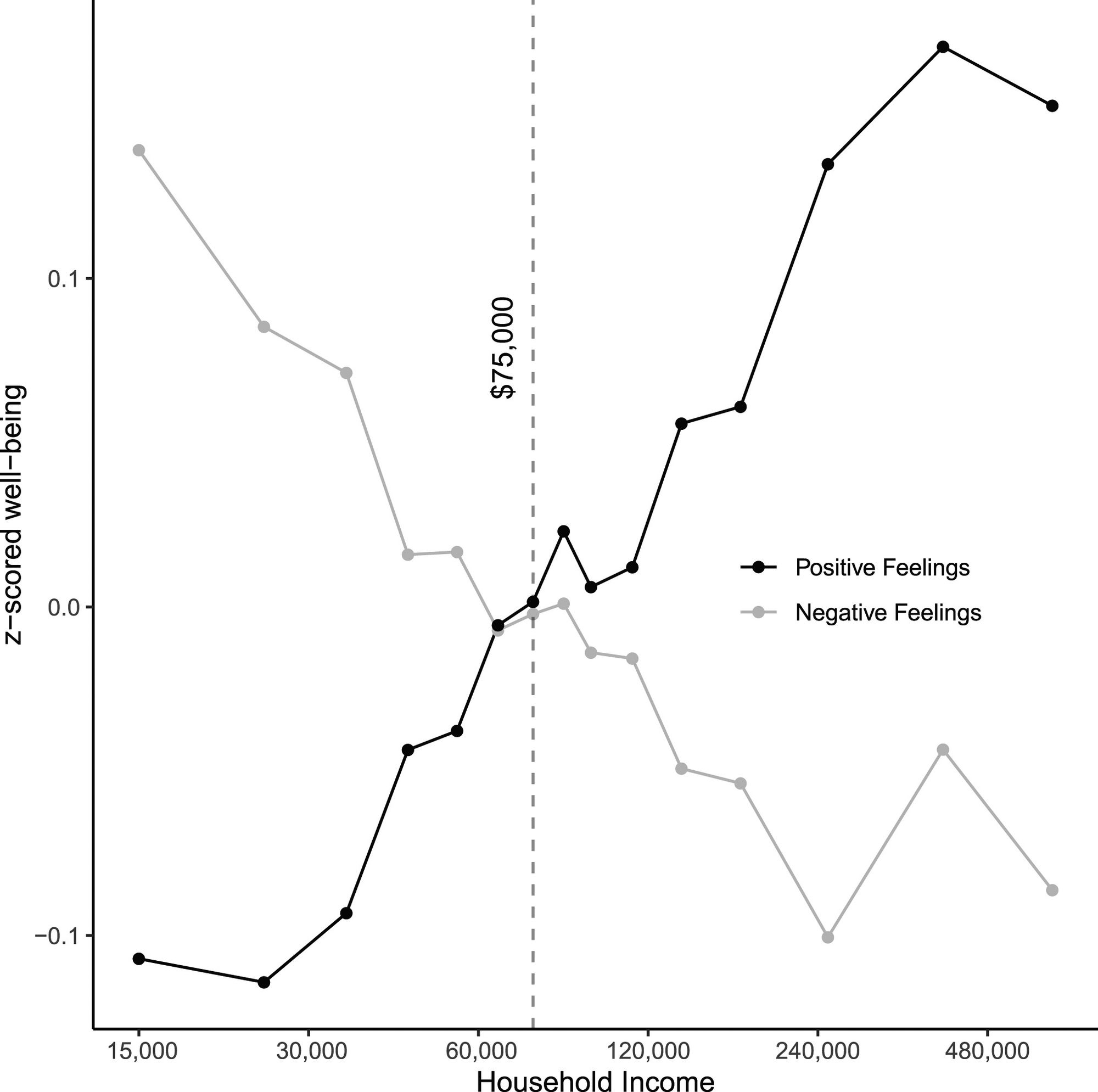 Since "experienced well-being" was a composite outcome of positive and negative emotions, the question became whether higher earners experienced more happiness or just less sadness. In an effort to answer that question, researchers looked more closely at each category of emotion individually. As it turns out, both were true.