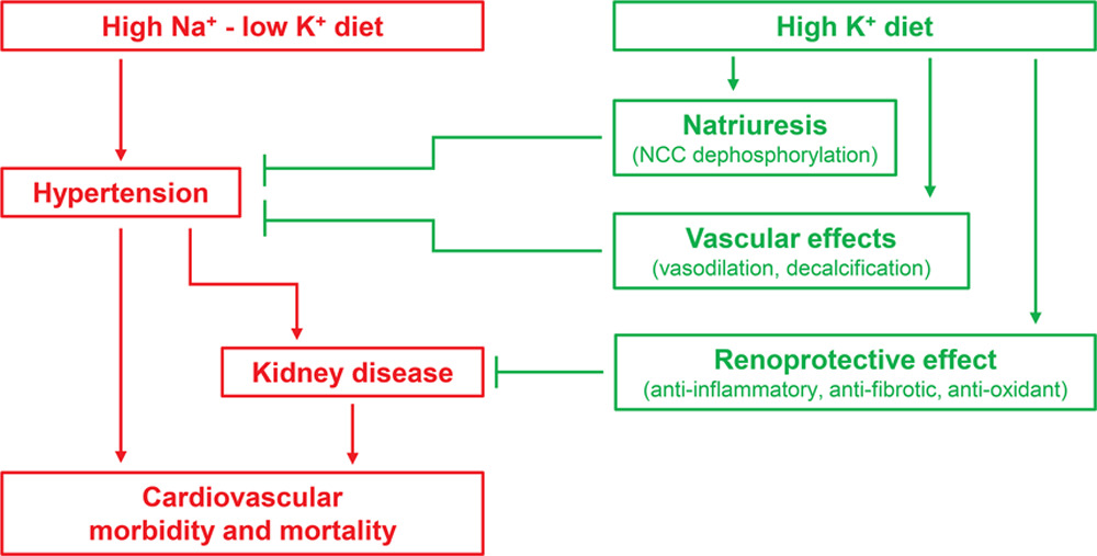 - Natriuresis: A high potassium diet promotes downregulation of the sodium chloride cotransporter, leading to sodium excretion and reduced blood volume.