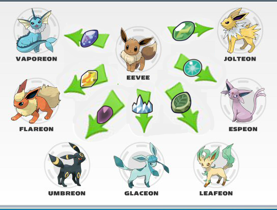 Once you hand Eevee a special item (fire stone, leaf stone, ice crystal, etc.), it transforms into a more specific, dangerous opponent in battle.