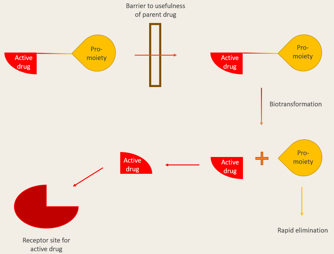 It is important that the prodrugs are non-toxic and rapidly eliminated from the body if not converted into the active drug.