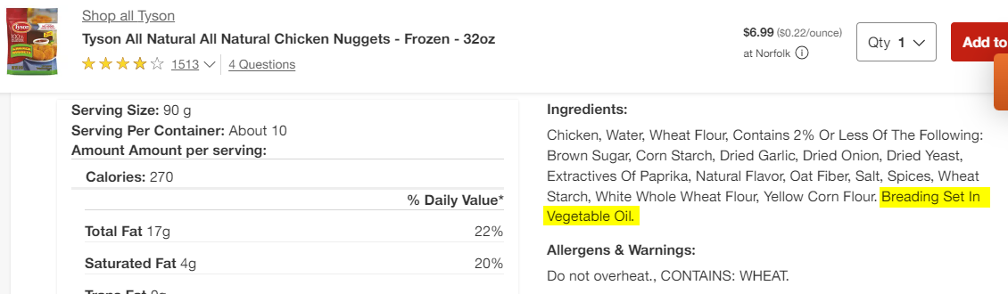 You can see the highlighted ingredients for the items in meal option 2. There are hidden seed oils in 3/4 items (not to mention the other laundry list of ingredients in each product! Like high fructose corn syrup in the Coke! – not pictured).