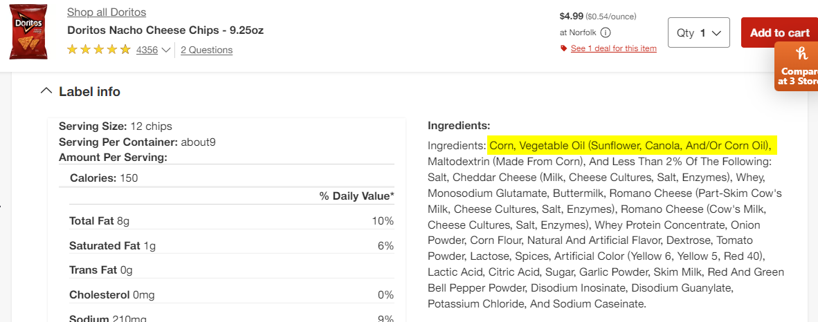 I recognize there are limitations for some individuals and families between the two meal options. The second option might be easier for a college student living in a dorm, low-income families, and more kid-friendly. This example is pretty drastic, but eye-opening, nonetheless. The main point I am making here is seed oils take the blame for being unhealthy when in reality the frequent consumption of processed foods is to blame. Making conscious decisions to limit seed oils will ultimately lead to limiting processed foods entirely.