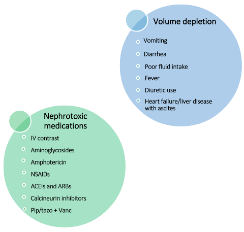 - Use of nephrotoxic agents or medications (see graphic below for examples)