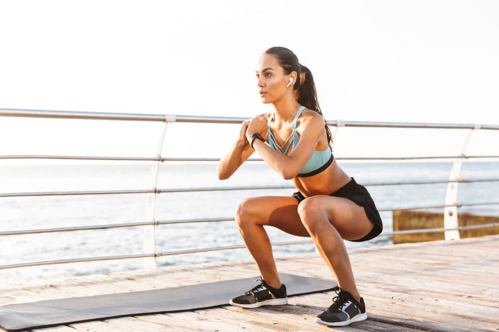 1. Squat: You might not think that bodyweight squats are challenging, but you'd be wrong! You don't need weight loaded on your back to make this movement worth doing. Don't believe me? Knock out a set of 50 air squats right now and tell me what you feel. Squats are fantastic because they target the quads, hamstrings, and glutes (3 large muscle groups) all with one movement!
